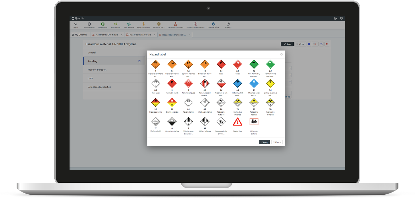 Si vous recherchez un logiciel complet de gestion des produits chimiques, Quentic est votre meilleur choix. De plus, le logiciel intégré vous permet de relier votre gestion des produits chimiques dangereux à d'autres systèmes de gestion tels que ISO 14001 ou 45001. Profitez des nombreuses synergies !