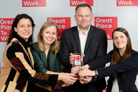 Source : Great to Work | JPG | 3,6 MB - Remise du prix : Meilleur employeur région Berlin-Brandebourg 2019.